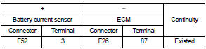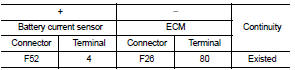1. Check the continuity between battery current sensor harness connector and ECM harness connector.