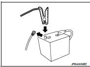 Before measuring the terminal voltage, confirm that the battery is fully charged. Refer to PG-111, "How to Handle Battery".