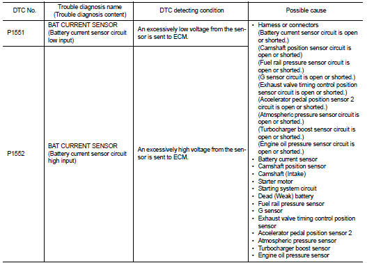 Nissan Juke Service and Repair Manual : P1551, P1552 battery current sensor