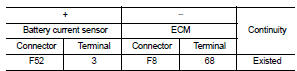 3. Check the continuity between battery current sensor harness connector and ECM harness connector.