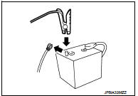 Before measuring the terminal voltage, confirm that the battery is fully charged. Refer to PG-111, "How to Handle Battery".
