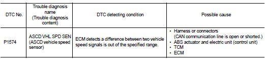 Nissan Juke Service and Repair Manual : P1574 ASCD vehicle speed sensor