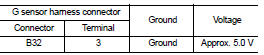3. Check continuity between TCM harness connector terminal and G sensor harness connector terminal.