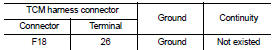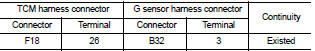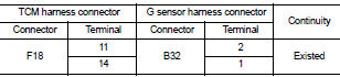 3. Check continuity between TCM harness connector terminals and G sensor harness connector terminals.
