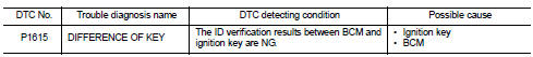 Nissan Juke Service and Repair Manual : P1615 diffrence of key