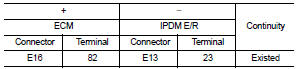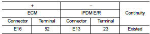 4. Check the continuity between ECM harness connector and IPDM E/R harness connector.