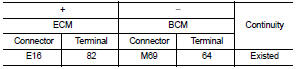 7. Check the continuity between ECM harness connector and BCM harness connector.