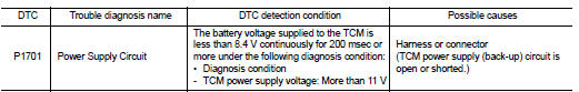 Nissan Juke Service and Repair Manual : P1701 TCM