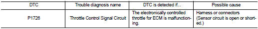 Nissan Juke Service and Repair Manual : P1726 throttle control signal