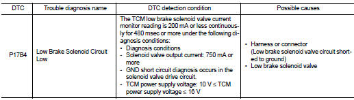 Nissan Juke Service and Repair Manual : P17B4 low brake solenoid