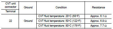 Check the resistance between the CVT unit connector terminal and ground.