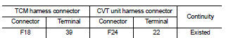 3. Check the continuity between the TCM harness connector terminal and the CVT unit harness connector terminal.