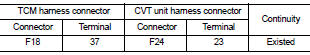3. Check the continuity between the TCM harness connector terminal and the CVT unit harness connector terminal.