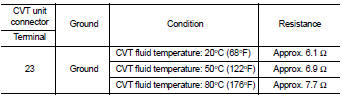 Check the resistance between the CVT unit connector terminal and ground.