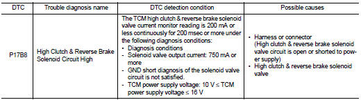 Nissan Juke Service and Repair Manual : P17B8 high clutch solenoid