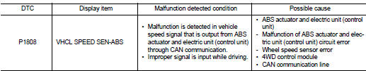 Nissan Juke Service and Repair Manual : P1808 Wheel speed sensor