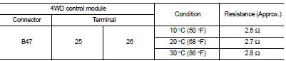1. Check the resistance between 4WD control module harness connector.