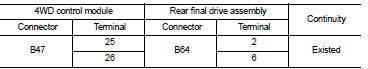 1. Check the continuity between 4WD control module harness connector and rear final drive assembly harness connector.