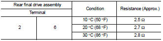 3. Check the resistance between rear final drive assembly connector terminals.