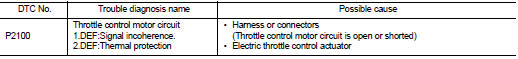 Nissan Juke Service and Repair Manual : P2100 electric throttle control function