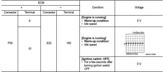 2. Check the voltage between ECM harness connectors terminals under the following conditions.