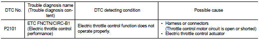 Nissan Juke Service and Repair Manual : P2101 electric throttle control function