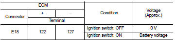 Check the voltage between ECM harness connector terminals as per the following conditions.