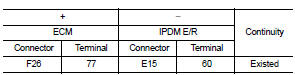 1. Check the continuity between ECM harness connector and IPDM E/R harness connector.