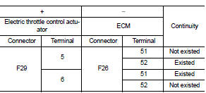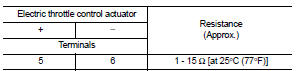 3. Check the resistance between electric throttle control actuator terminals as per the following.