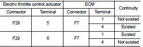 3. Check the continuity between electric throttle control actuator harness connector and ECM harness connector.
