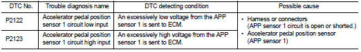 Nissan Juke Service and Repair Manual : P2122, P2123 APP sensor