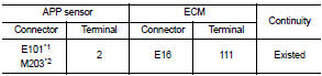 1. Check the continuity between APP sensor harness connector and ECM harness connector.