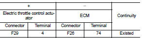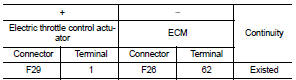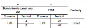 1. Check the continuity between electric throttle control actuator harness connector and ECM harness connector.