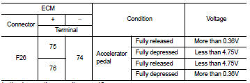 6. Check the voltage between ECM harness connector terminals as per the following conditions.