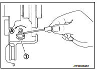 4. Remove the adjusting hole plug from the disc rotor. Turn the adjuster (1) in the direction (A) as shown in the figure using a suitable tool until the disc rotor is locked.