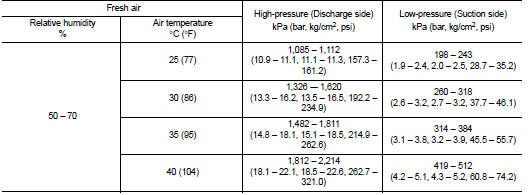 If any of test result is out of the specified value, perform diagnosis by gauge pressure. Refer to HA-83, "Symptom Table".