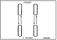 • When installing wheels, tighten them diagonally by dividing the work two to three times in order to prevent the wheels from developing any distortion.