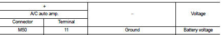 2. Check voltage between A/C auto amp. harness connector and ground.