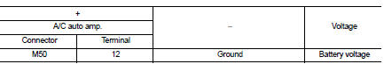 3. Check voltage between A/C auto amp. harness connector and ground.