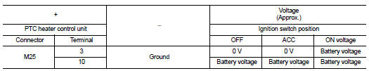 2. Check voltage between PTC heater control unit harness connector and ground.