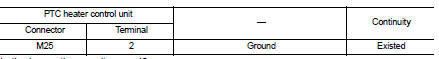 2. Check continuity between PTC heater control unit harness connector and ground.