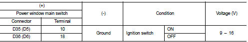 3. Check voltage between power window main switch harness connector and ground.