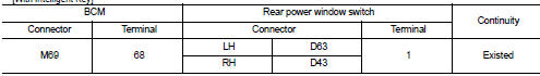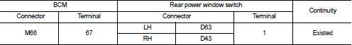 3. Check continuity between BCM harness connector and rear power window switch harness connector.