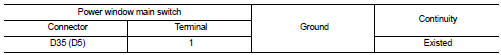 2. Check continuity between power window main switch harness connector and ground.
