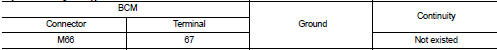 4. Check continuity between BCM harness connector and ground.