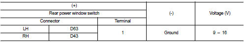4. Check voltage between rear power window switch harness connector and ground.