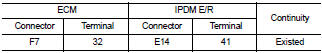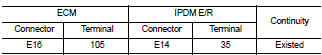 3. Check the continuity between ECM harness connector and IPDM E/R harness connector.