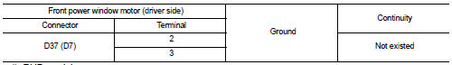4. Check continuity between front power window motor (driver side) harness connector and ground.