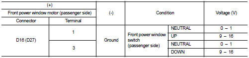1.CHECK FRONT POWER WINDOW MOTOR (PASSENGER SIDE) INPUT SIGNAL