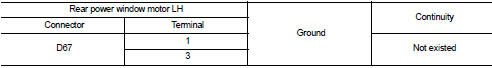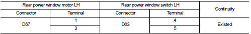 3. Check continuity between rear power window motor LH harness connector and rear power window switch LH harness connector.